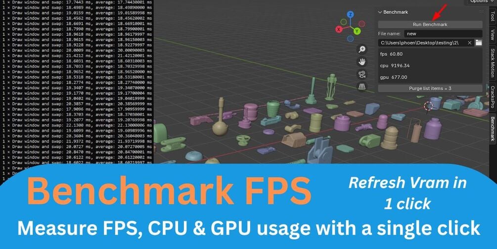 Instantly benchmark your viewport performance in Blender! With this add-on you can: